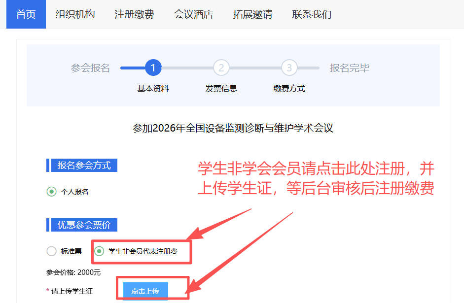(2)学生非会员报名时需上传学生证照片进行审核,如想享受学生会员价,请提前注册学生会员后在走标准票通道注册缴费。