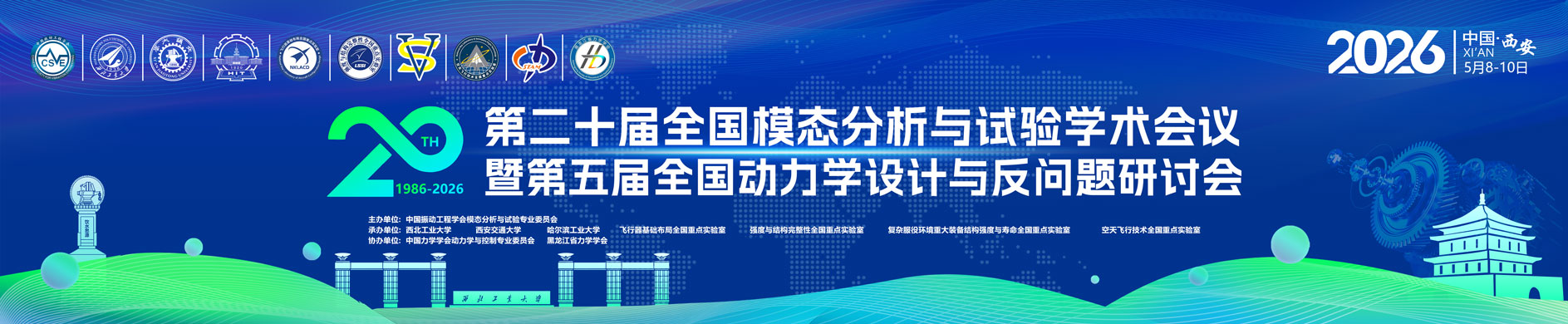 全国模态分析与试验学术会议是由中国振动工程学会模态分析与试验专业委员会主办的全国系列学术会议,自1986年以来,每两年一次,已经成功举办了十九次全国学术会议。全国动力学设计与反问题研讨会是由中国力学学会动力学与控制专业委员会与中国振动工程学会模态分析与试验专业委员会共同发起,首届于2022年在哈尔滨举办。第二十届全国模态分析与试验学术会议将和第五届全国动力学设计与反问题研讨会一同于 2026 年5月8-10 日在西安举行。会议将交流模态分析与试验及动力学设计与反问题领域的最新理论及应用新成果、新技术,同时邀请在本领域具有影响力的专家学者做大会报告。本次会议将根据论文摘要及报告交流情况,择优征集全文,并推荐至《振动工程学报》及《航空工程进展》进入其快速评审流程。5月8日晚将召开中国振动工程学会模态分析与试验专业委员会第九届二次会议,请中国振动工程学会模态分析与试验专业委员会全体委员参会。